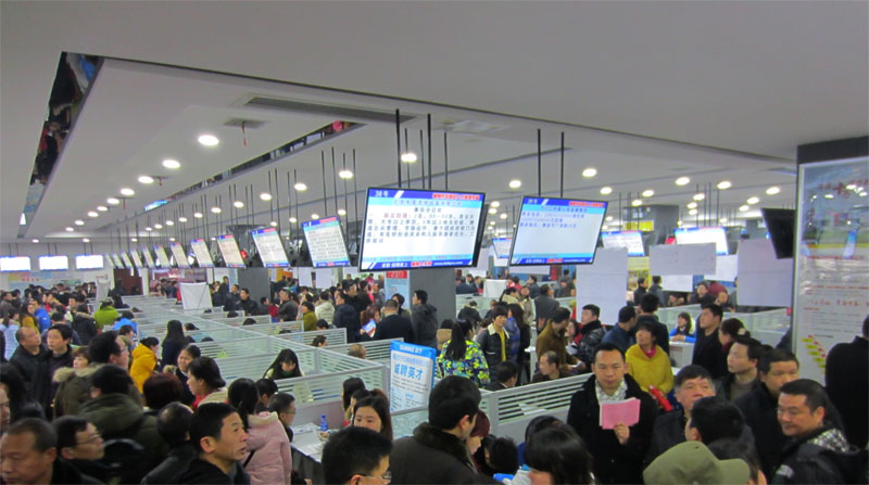 每月8、18、28號定期舉辦的大型現場招聘會,每場招聘會的招聘席位都是座無虛席,進場求職人數更是場場爆滿。室內招聘會每場111個招聘席位也是遠遠不夠用,招聘企業的求賢若渴的迫切心情和對我市場品牌的極高信賴,經常需要在現場采取見縫插針的辦法臨時增加30-40個招聘席位以滿足眾多企業的參會要求。特別是在蓮湖廣場舉辦的大型戶外招聘會中,每次進場的招聘企業都在400家以上,求職人數均超過2萬人,最多一場曾創下3萬人之多。